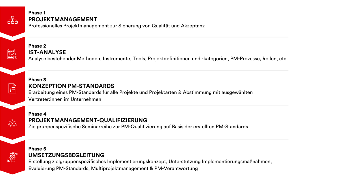 Unsere Expert:innen entwickeln mit Ihnen maßgeschneiderte Konzepte zur Optimierung Ihres Projektmanagements und begleiten die Umsetzung zielorientiert.